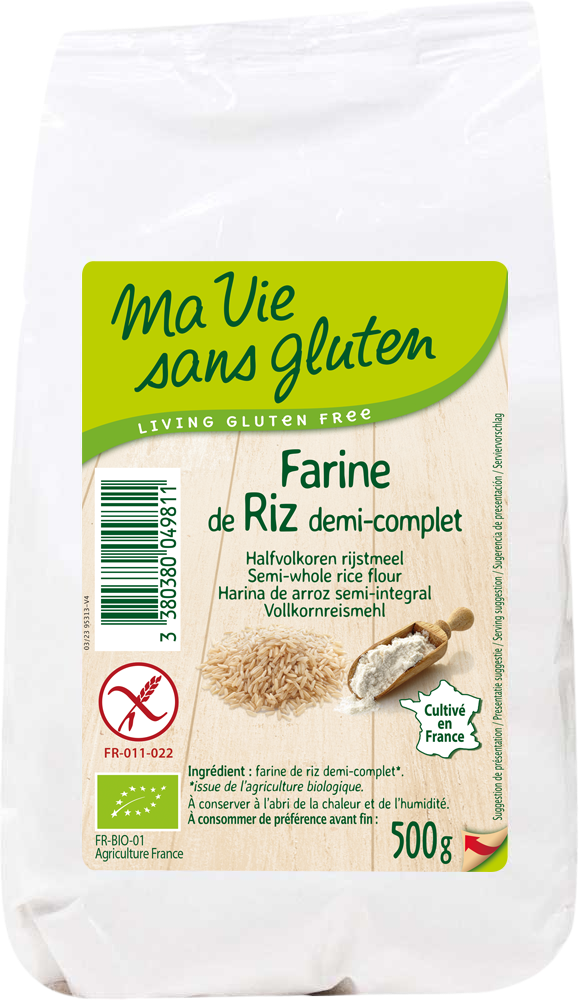 La farine de riz demi-complet : elle se trouve facilement dans les magasins bio ou sur des sites spécialisés comme Greenweez.
